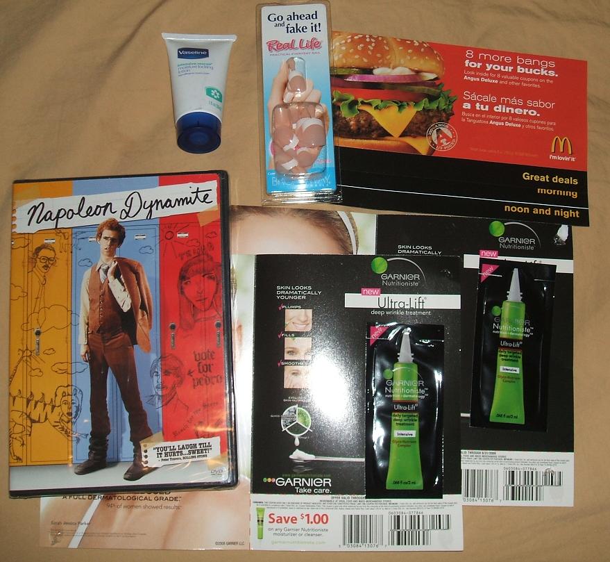 Pinecone check, theraflu rebate, coupons from a friend the card is from Stowers Swaddlers…couldn’t find the post…