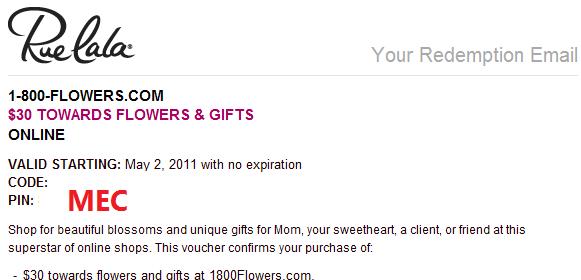 $30 1800Flowers GC
