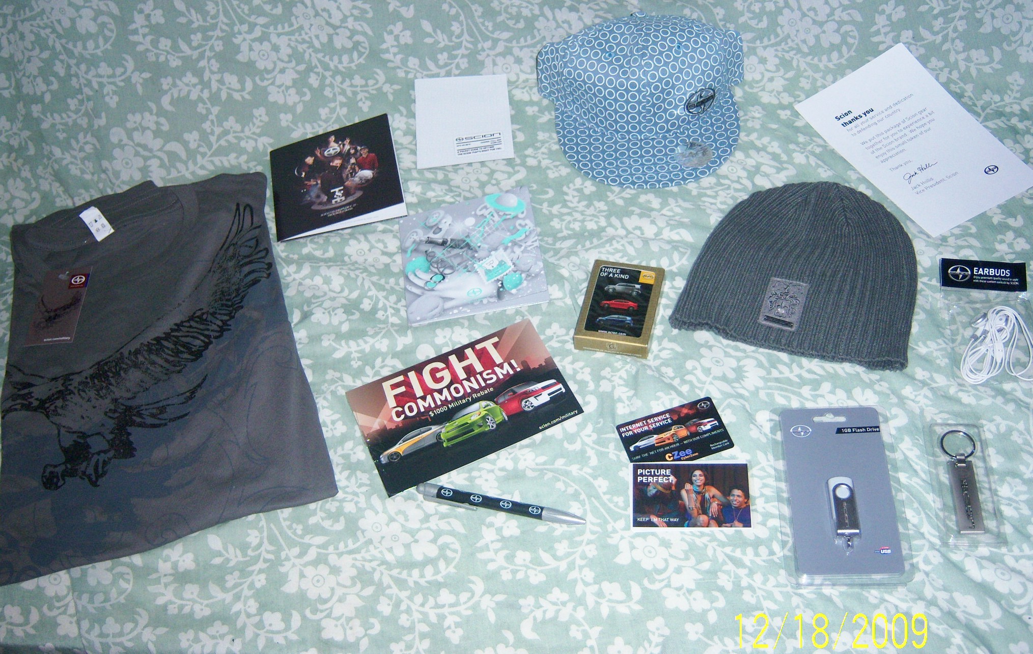 OMG! My neighbor was so excited to receive this package. Here’s what was inside: Size 2XL shirt, hat, beanie cap, Pen, earbuds, playing cards, Keychain, 2 CDs, booklet, 1 GB Flash Drive, CZee CyberZone internet card, Business card protector and Postcards