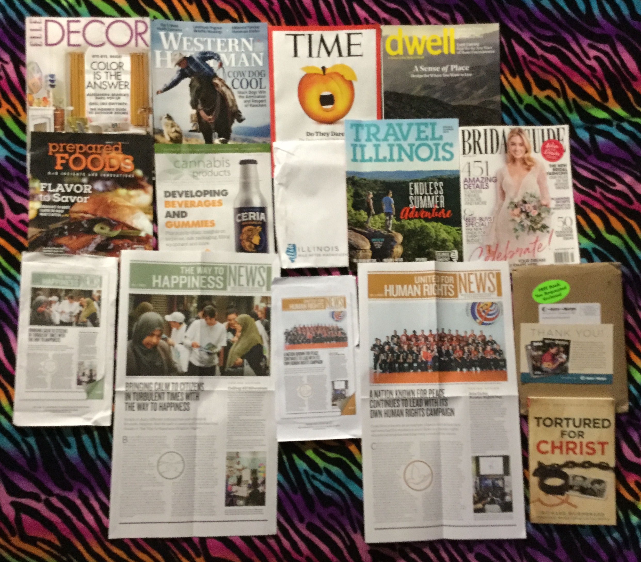๐ฌ03-18-2019 FREE mail ๐ Elle Decor ๐Western Horseman โณTime ๐กDwell ๐Prepared Foods ๐ถCannabis Products ๐Travel Illinois ๐ฐ Bridal Guide ๐ The Way to Happiness News letter ๐ช United for Human Rights newsletter โชTortured for Christ book from The Voice of the Martyrs ๐
