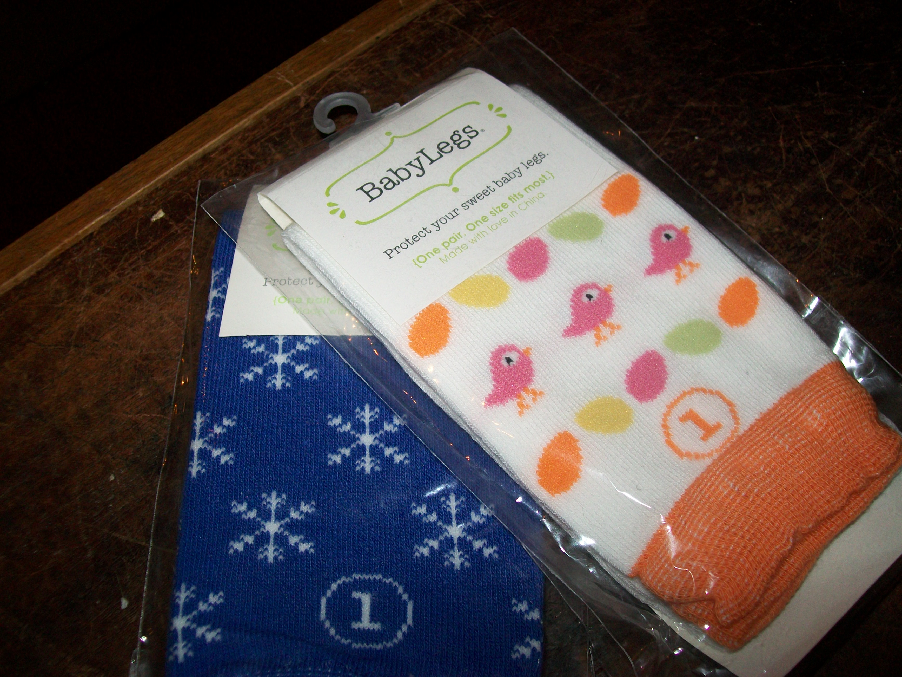 I got these baby leg warmers free from a Twitter giveaway.